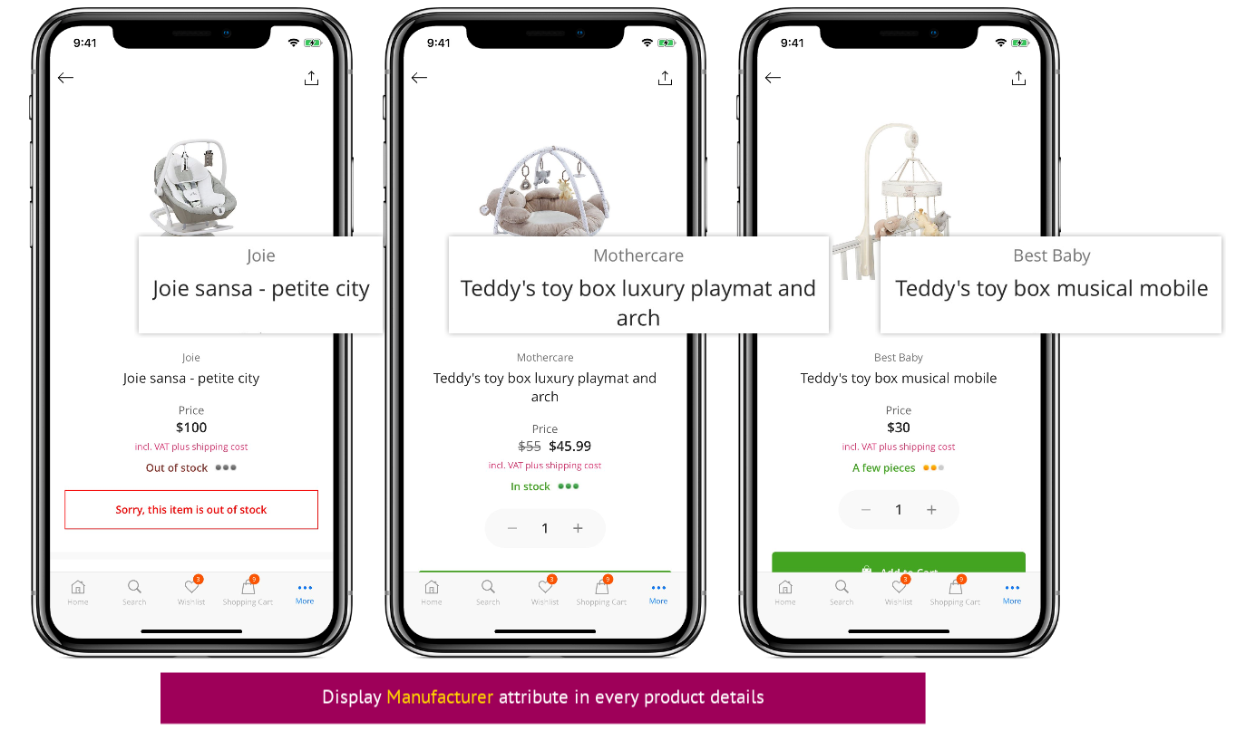 Settings available in JMango360 Back Office > Settings > Catalog Settings > Product details related settings. Product Attribute in Details This setting is helpful when you want to show a product attribute such as brand or manufacturer in all product ...