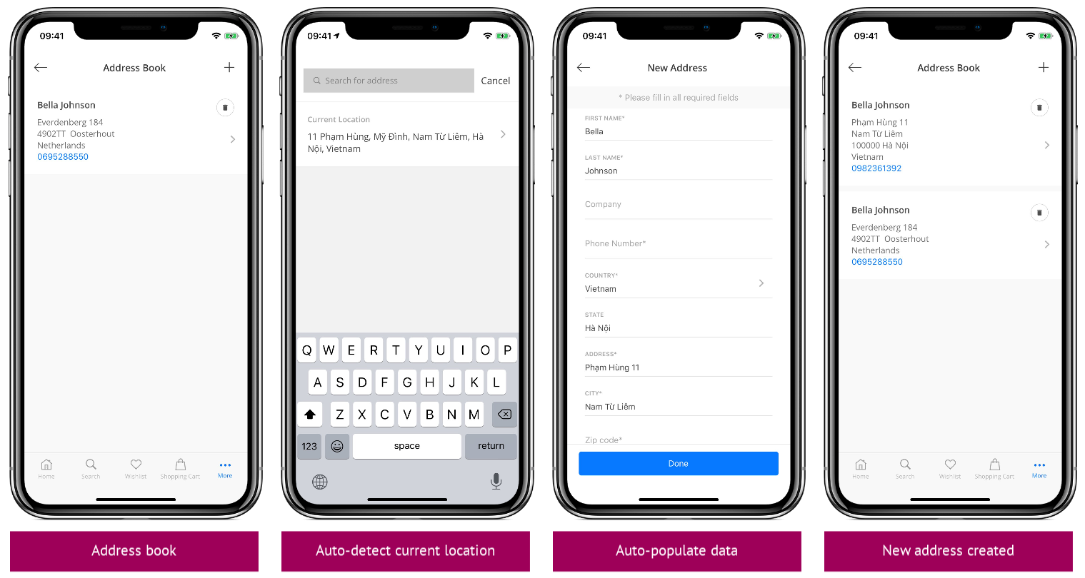 The feature allows showing all relevant suggestions with full of address information based on the entered characters before. Once a user selects one of the returned addresses, all the address fields will be automatically populated, thus saving time and preventing typing errors.