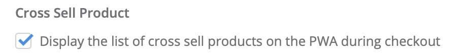 Cross-sell products are similar to impulse purchases in the checkout line of a grocery store. They appear in the shopping cart, just before your PWA users begin to check out. If you use cross-selling on your store, simply enable this setting to make cross-selling available on PWA as well.