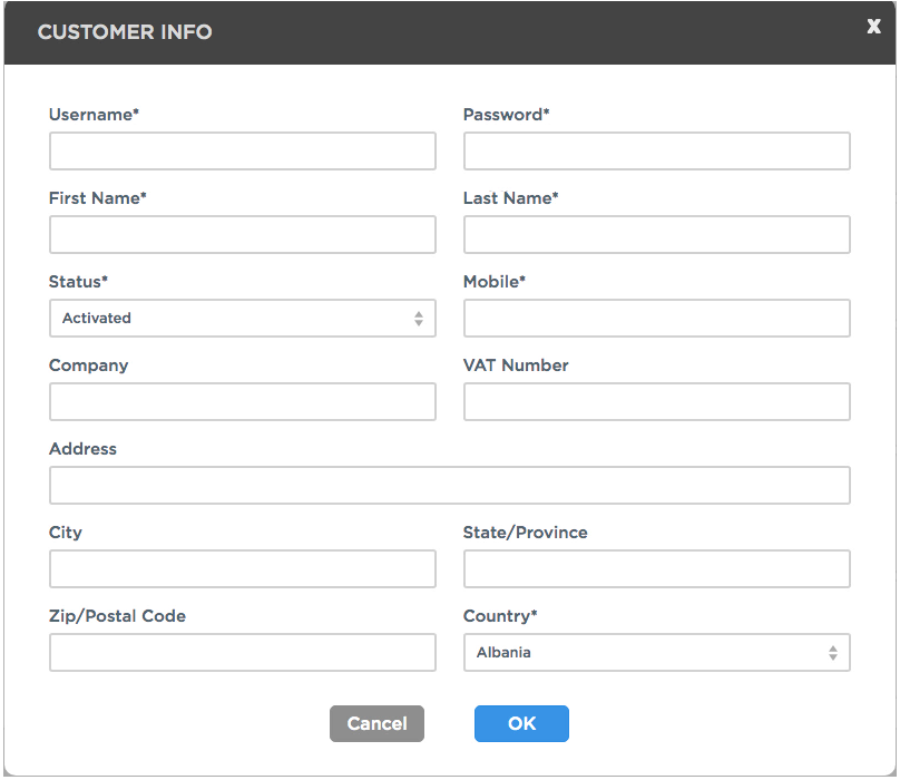 To create a customer account, click Add New Customer and fill in the form, then click OK to finish. Please make sure that the username must be an email address.