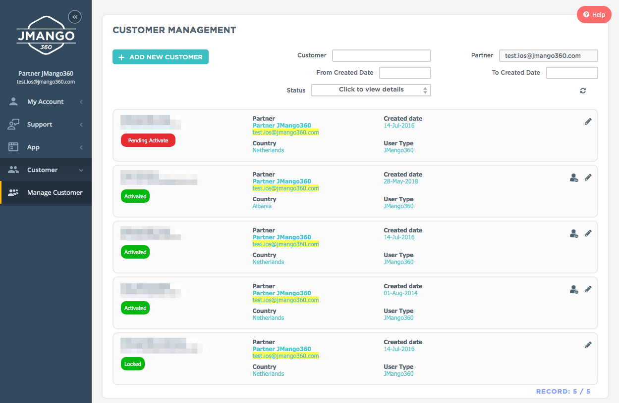 As a partner of JMango360, all of your customers are under your control in JMango360 Back Office. To manage your customers, go to