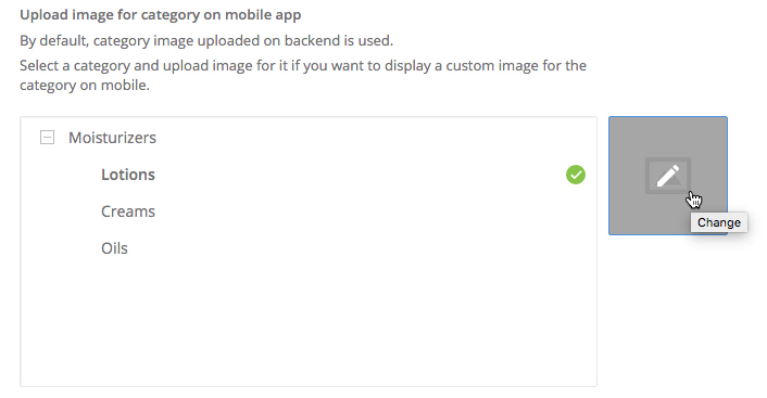 By default, the categories and sub-categories in your app use the same thumbnail images as on the webstore. To update a sub-category thumbnail image, just click the image box associated with that sub-category and select the image you want.