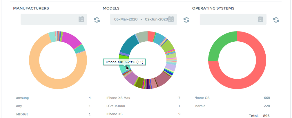 Regarding device statistics, you are able to see the manufacturers, models, and operating systems of