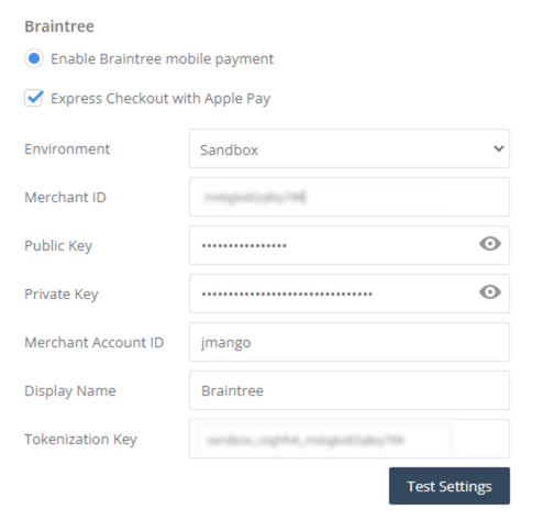 Settings available in JMango360 Back Office > Settings > Native Payment Settings. While there are multiple solutions for processing payments via mobile apps, Braintree stands out as the one of the most efficient payment systems. Knowing that, we are ...