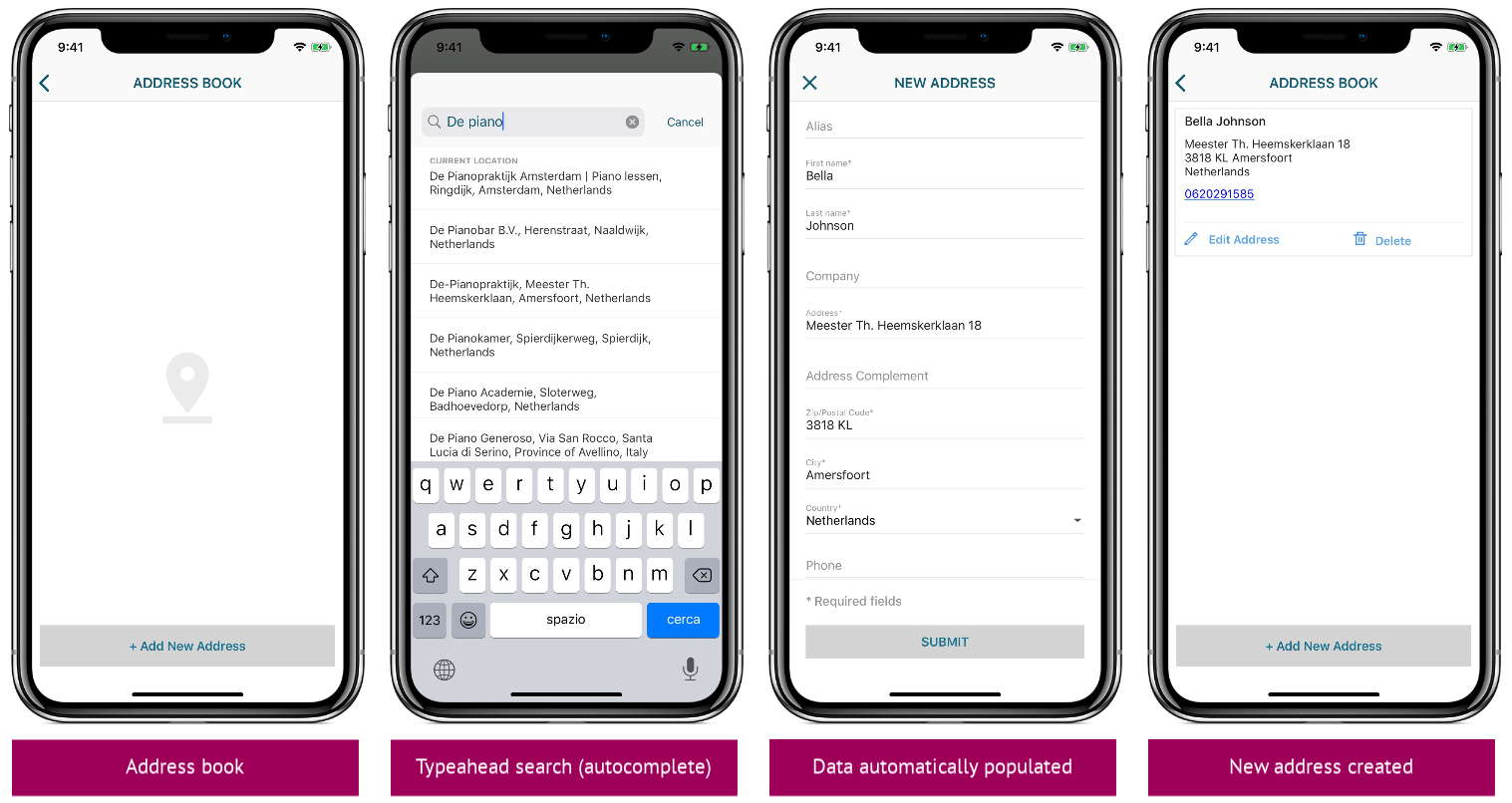 The feature allows showing all relevant suggestions with full of address information based on the entered characters before. Once a customer selects one of the returned addresses, all the address fields will be automatically populated, thus saving time and preventing typing errors.