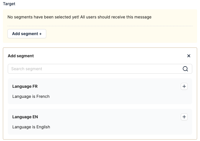 Add segments you want to send the push message to. If none is selected, the message will be sent to all users.