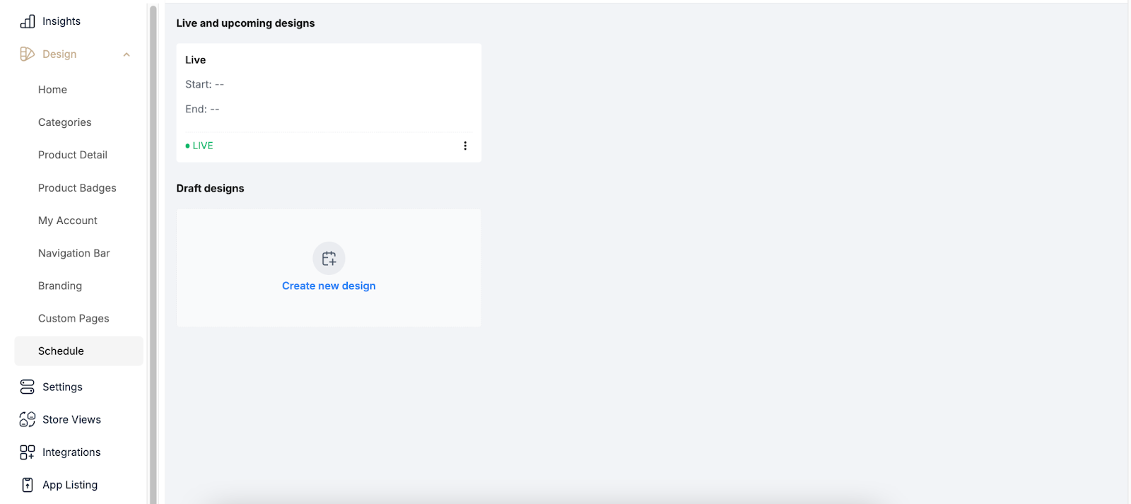 To start a new scheduled design, go to the Draft designs section in the Schedule tab.