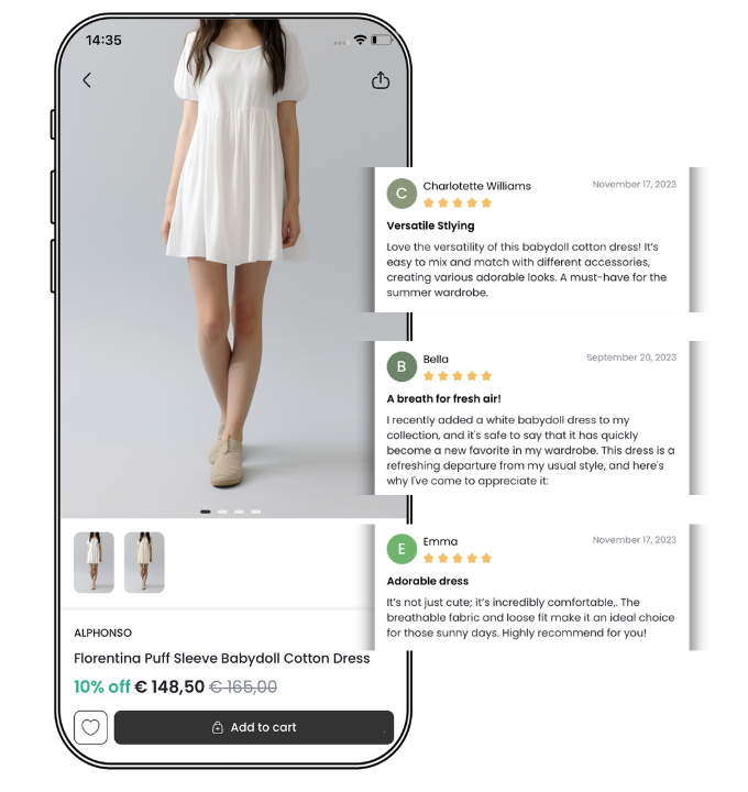 - Enable app users to filter product reviews based on star ratings and write product reviews.
