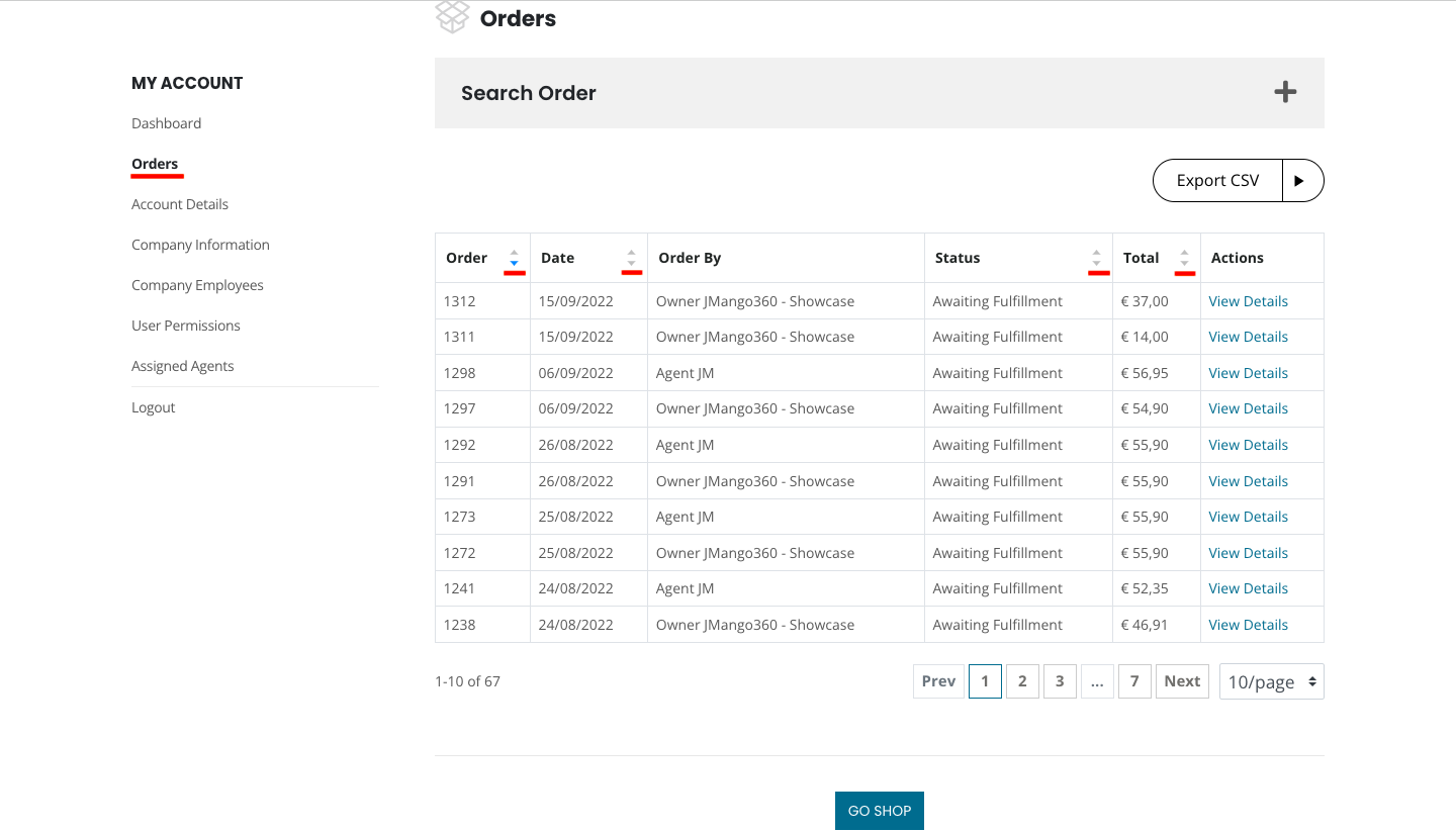 B2B Buyer can also export the data of all the orders to a CSV file.