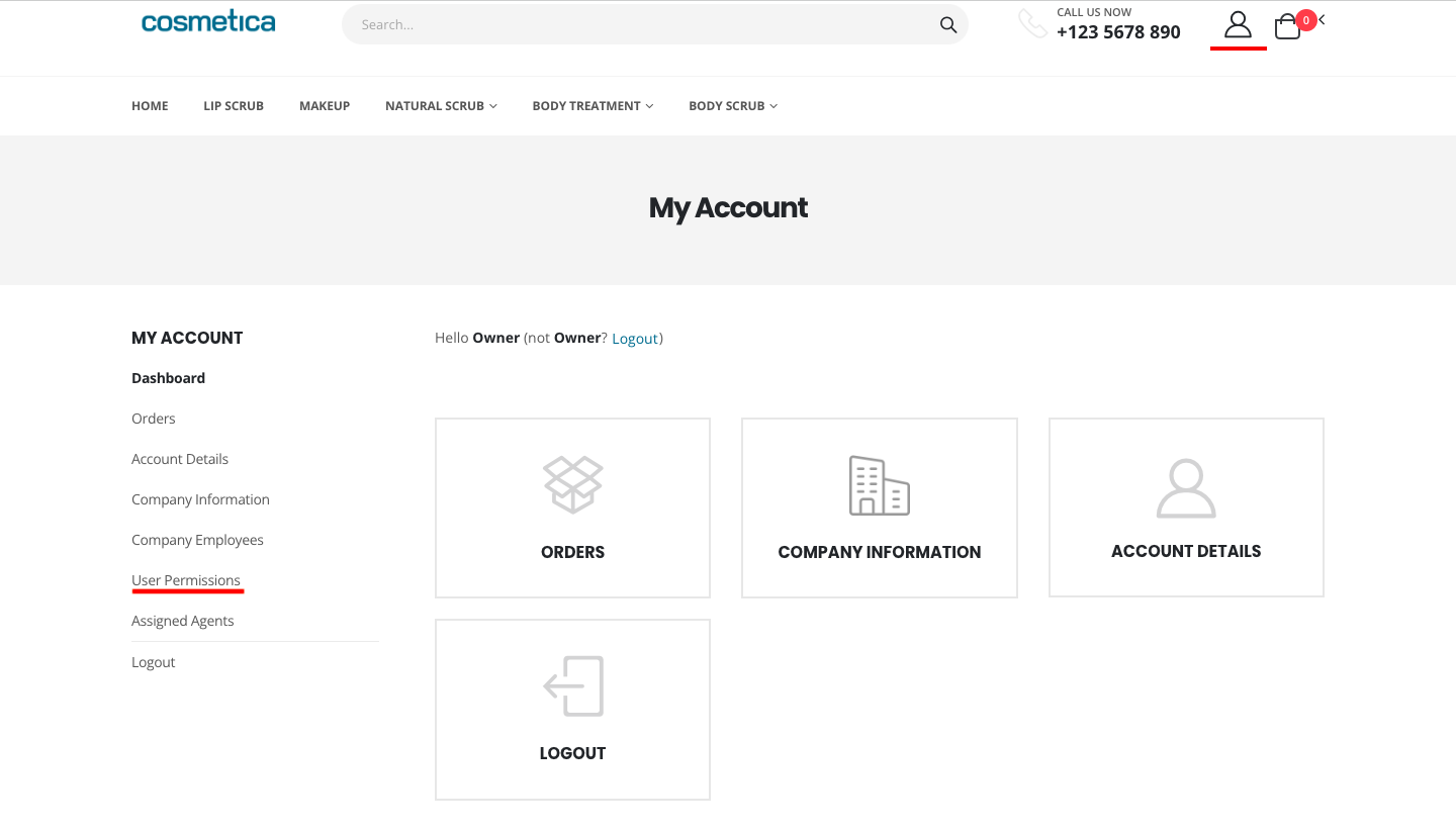 Screen User Permission will be displayed as a menu item in the account dashboard's side menu for the B2B Buyer.