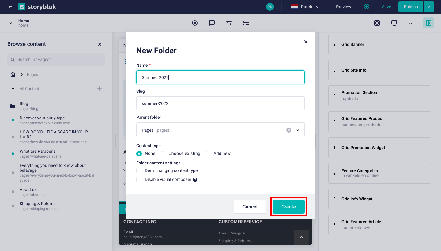 How: Navigate Space > Content > Page. On the left of the screen, click “+” and then choose Folder to create a folder. After filling in full information, click Create.