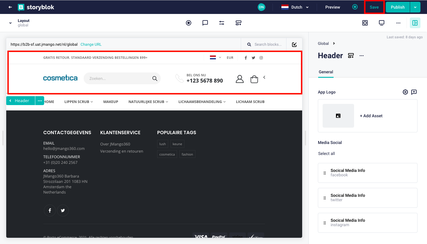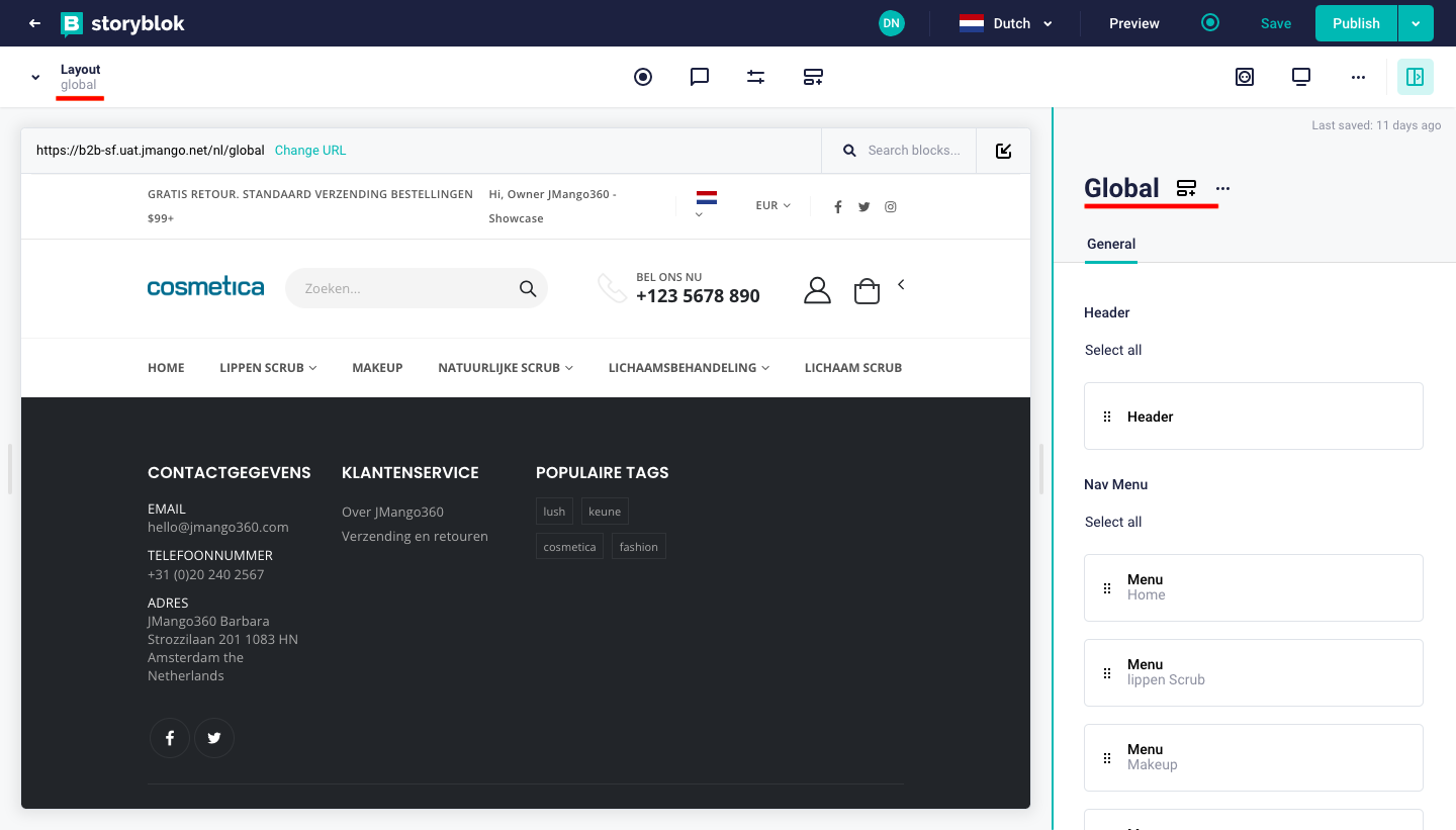 StoryBlok - Global Content Edit