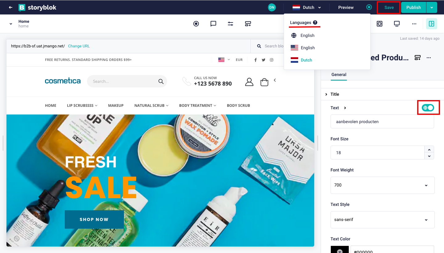 , users can input the translation they want to display per that language. We also have a translation automatically applied for the storefront’s default texts that are not editable elements in the storefront.