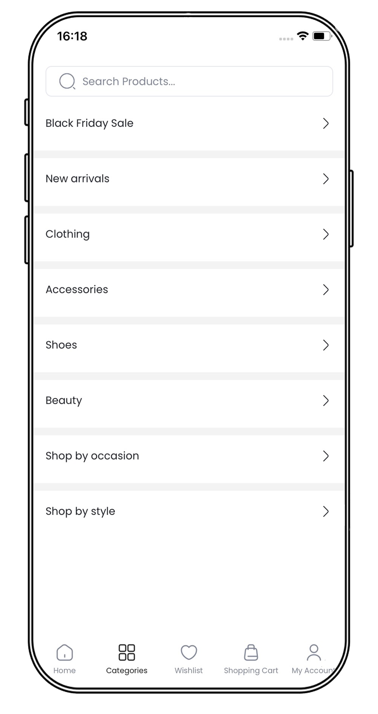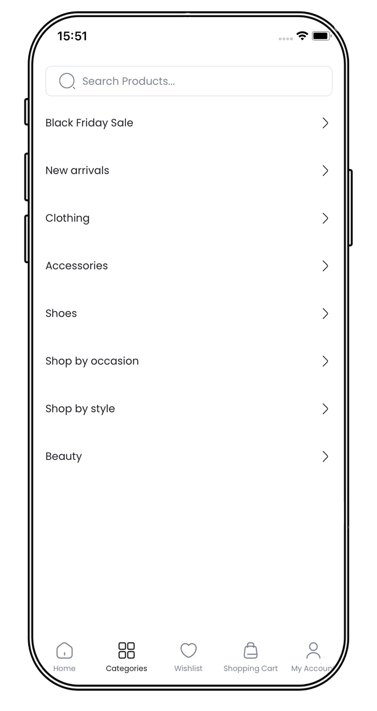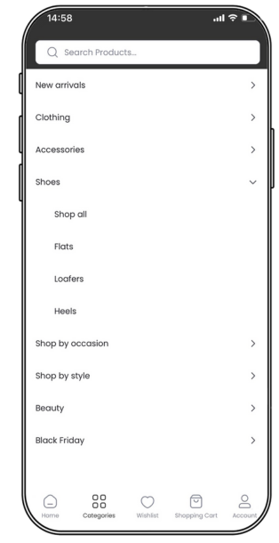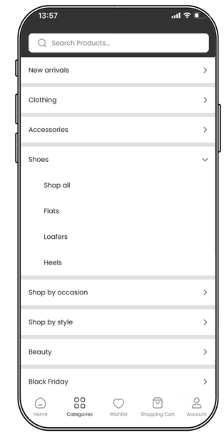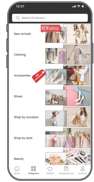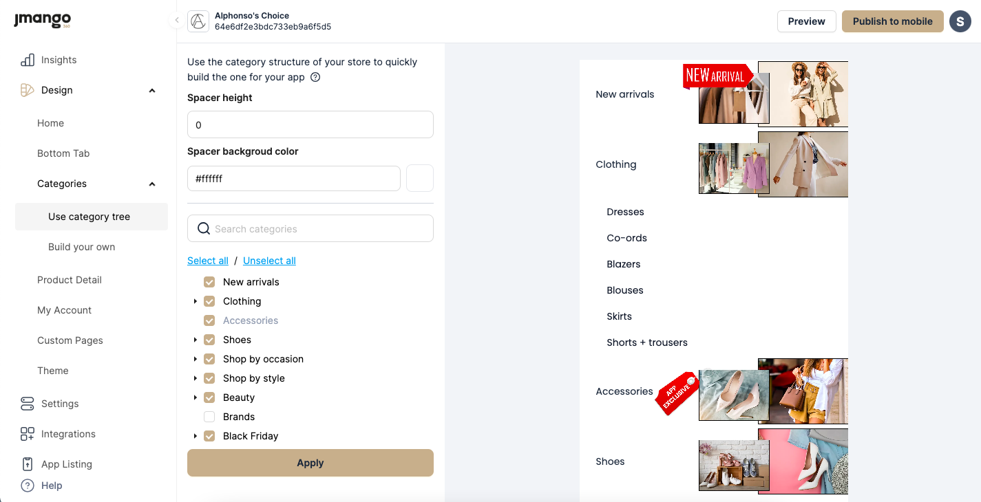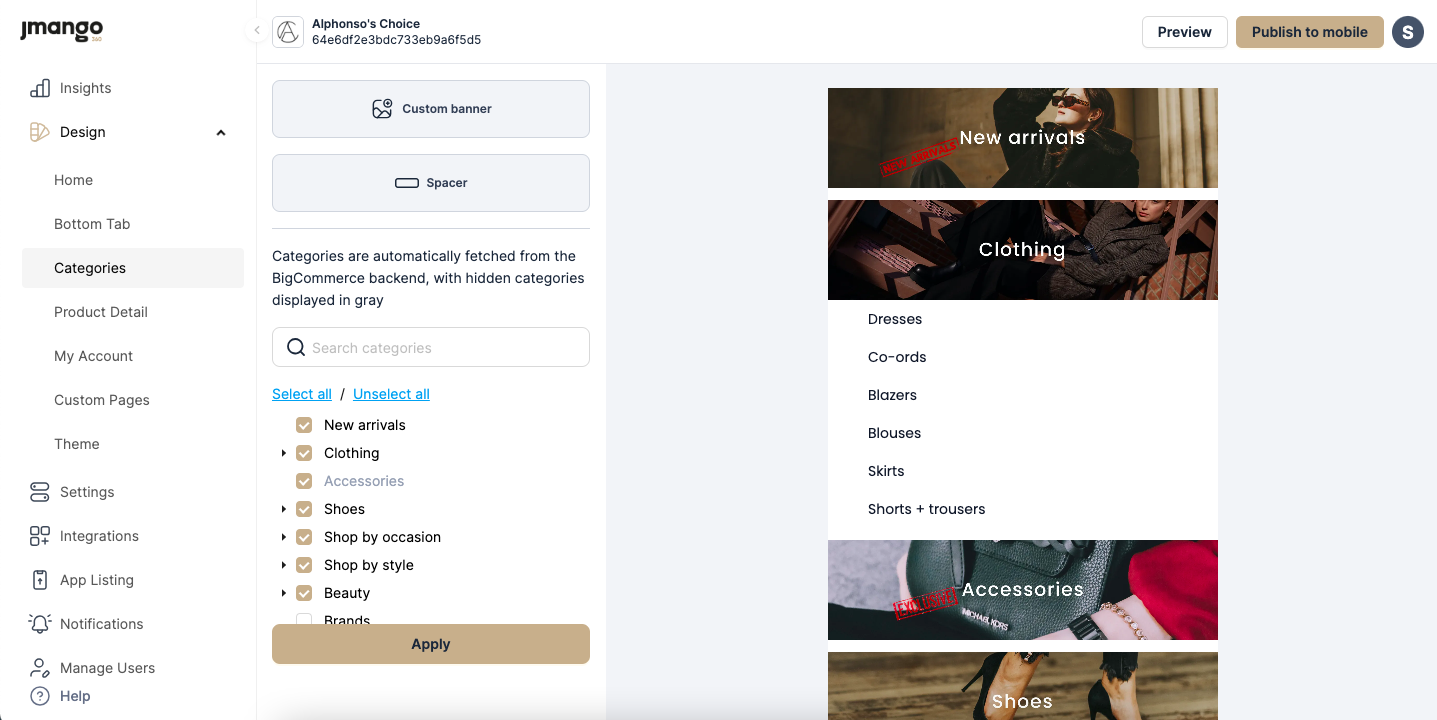 - The category structure in Alphonso is automatically fetched from the e-commerce backend, allowing you to rapidly design the categories page for your app.