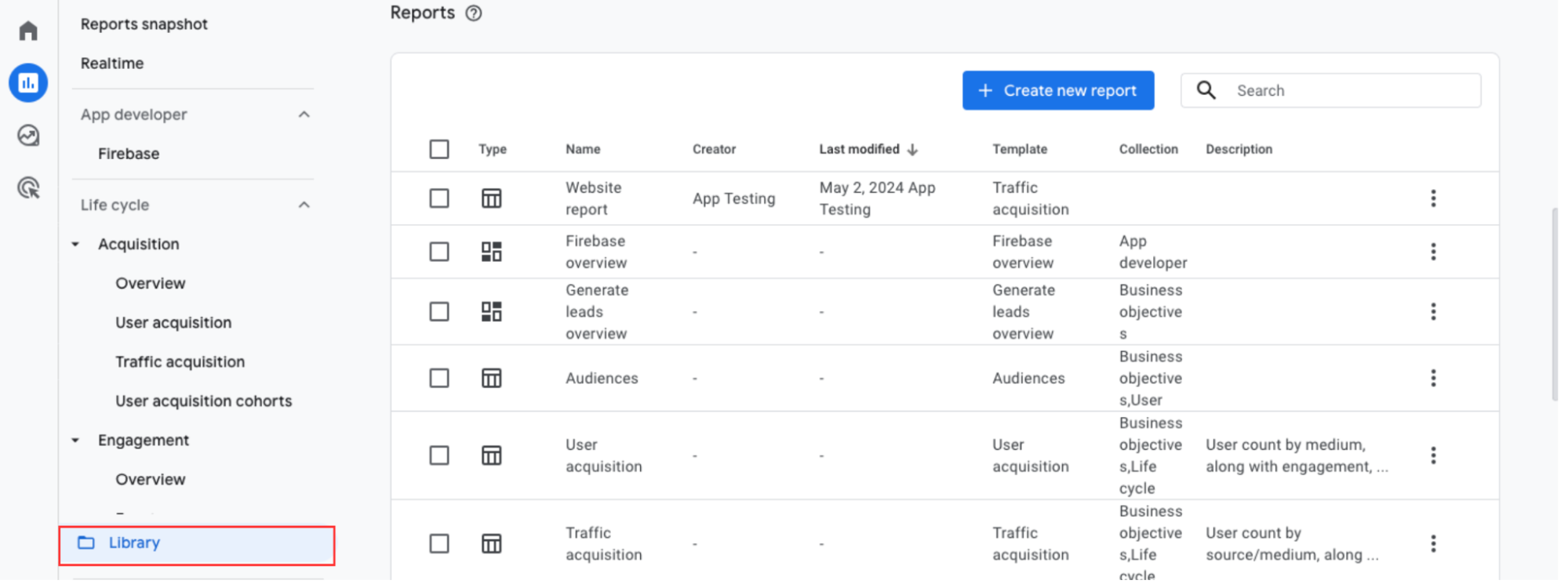 Step 4: To access the report later, navigate to the Library section and open the saved report.