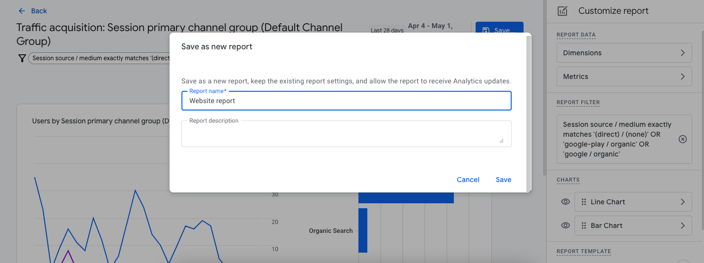 You can save the customized report you create with the instructions below. See the steps further in the article.