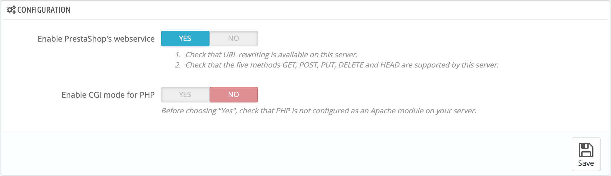 Step 3: In the Configuration section, click YES to enable the webservice.