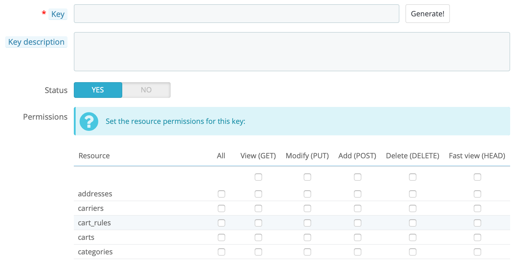 The webservice key provides a way to authorize users to access the webservice of PrestaShop. First you need to activate the webservice.